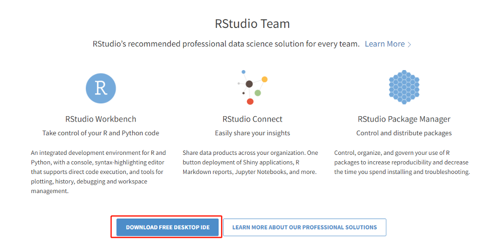 进入Rstudio官网,点击DOWNLOAD FREE DESKTOP IDE